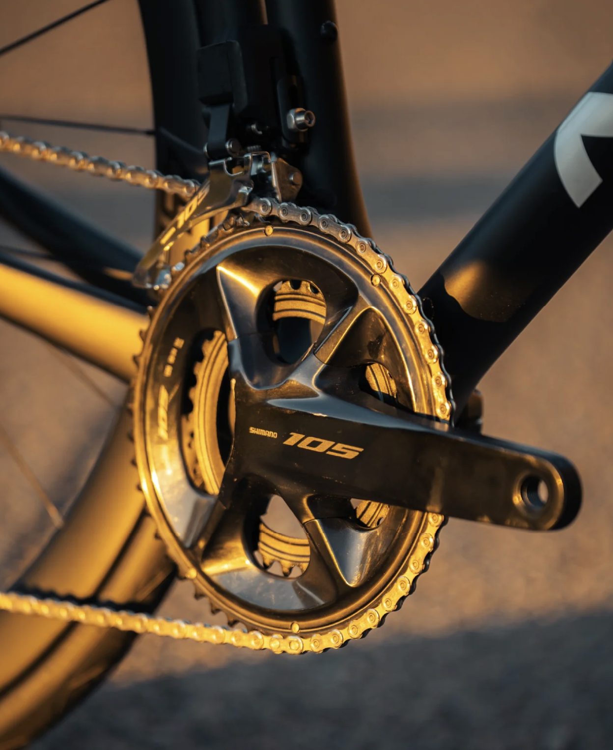 Uno de los grandes atractivos de esta versión es la incorporación del grupo electrónico Shimano 105 Di2 (R7150/R7170). Se trata de una transmisión semi-inalámbrica de 12 velocidades, precisa, rápida y muy fiable, incluso bajo carga.